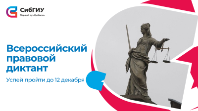 СибГИУ приглашает всех студентов и сотрудников университета принять участие в правовом диктанте, который проходит онлайн с 3 по 12 декабря.